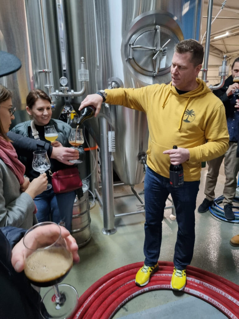 Damit das Ganze nicht all zu trocken wird, werden während der Führung drei Biere direkt vom Lagertank verköstigt.